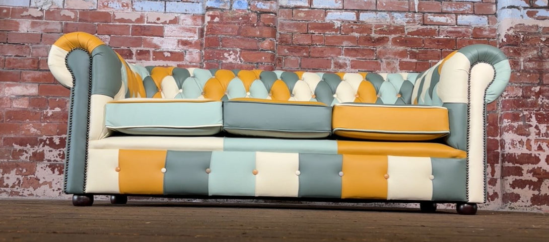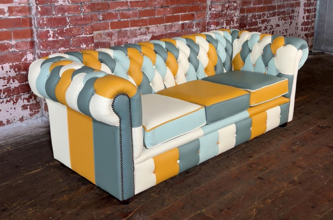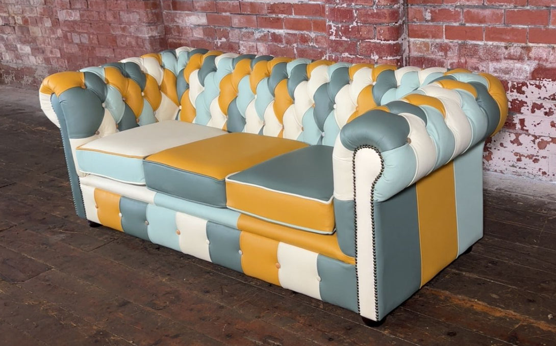 Classic Harlequin 3 Seater Sofa in high grade pastel leather